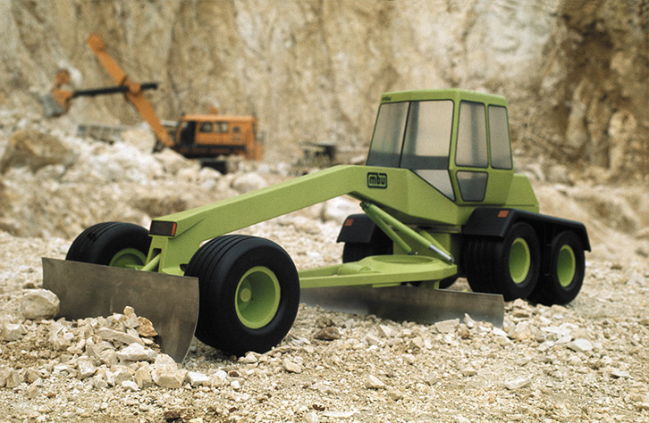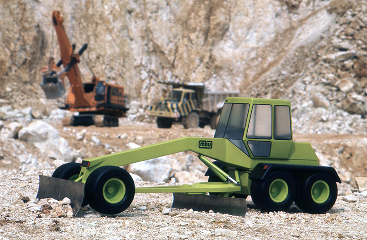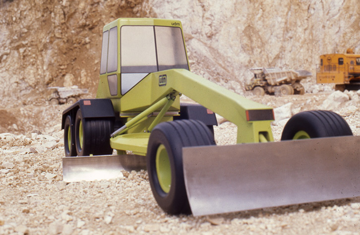 Die Entwicklungsgruppe Lindinger hielt an dem Grader die Hydrauliken vor dem Fahrerarbeitsplatz für das größte Hinderniss, um zu einen neuen sinnvollen Ansatz zu gelangen. Zum einen, weil sie die Sicht des Fahrers zur Feinkontrolle der Arbeiten erheblich behinderten und zum anderen auch aus ästhetischen Gründen.