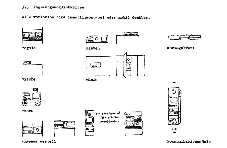 Das erste umfassende Konzept für sinnvoll aufeinander abgestimmte Geräte der visuellen und auditiven Informationsübermittlung im Wohnbereich und damit Vorläufer einer generellen weltweiten Entwicklung. Also ein modulares System für Radio,Tonband, Plattenspieler, Fernseher und später CD-Player: ein typisches Beitrag der hfg ulm, die zuvor schon mit ihren Radioentwürfen für Braun und deren neuartigen Präsentation die Gestaltungs-philosophie der Firma Braun begründete. Die Diplomarbeit von Herbert Lindinger für Produktgestaltung an der hochschule für gestaltung ulm, angeregt und betreut von dem hfg-Dozenten Hans Gugelot mit dem Korreferenten Dr. Fritz Eichler, damals Designdirektor bei Max Braun Frankfurt. Zudem unterstützt mit einem Braun-Stipendium.