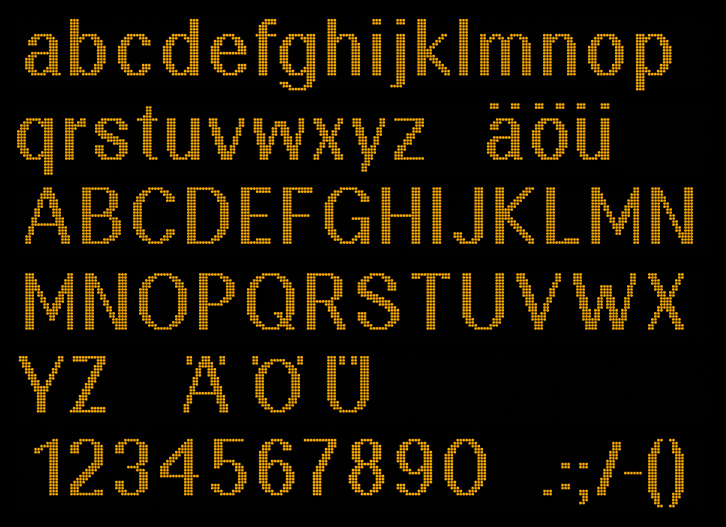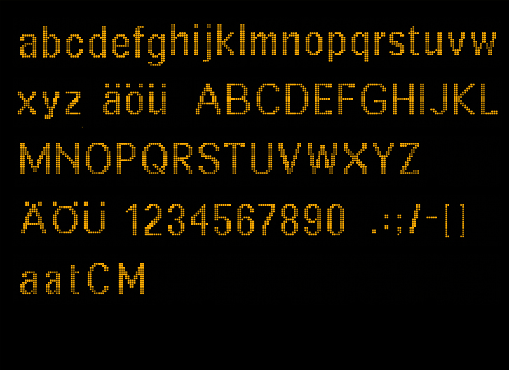 Die frontalen und seitlichen Fahrtziel-Anzeigen an Bussen, Straßen- und U-Bahnen bestanden ursprünglich aus austauschbaren Schildern. Sie wurden von bedruckten Rollen-Bändern abgelöst, die eine schnelle Anpassung bei Einsatz der Fahrzeuge auf anderen Linien durch den Fahrer ermöglichten. Von großem Vorteil war die exakte Druckqualität der Schriften, von Nachteil das häufige Reißen der Bänder. Mit dem Aufkommen elektronisch gesteuerter Leuchtdioden-Anzeigen wurde dieser Nachteil behoben kam es zu einem dramatischen Verfall an guter Lesbarkeit und Schönheit. Ein Buchstabe muss in einem Raster von, aus ökonomischen gründen, wenigen Lichtpunkten erstellt werden. Das gelingt bei den senkrechten und waagrechten Teilen eines Buchstabens gut, die vielen schrägen und runde Teile im ABC geraten auf Grund des sich ergebenden äußerst unruhigem Zick-Zack allerdings eher zu Karikaturen.