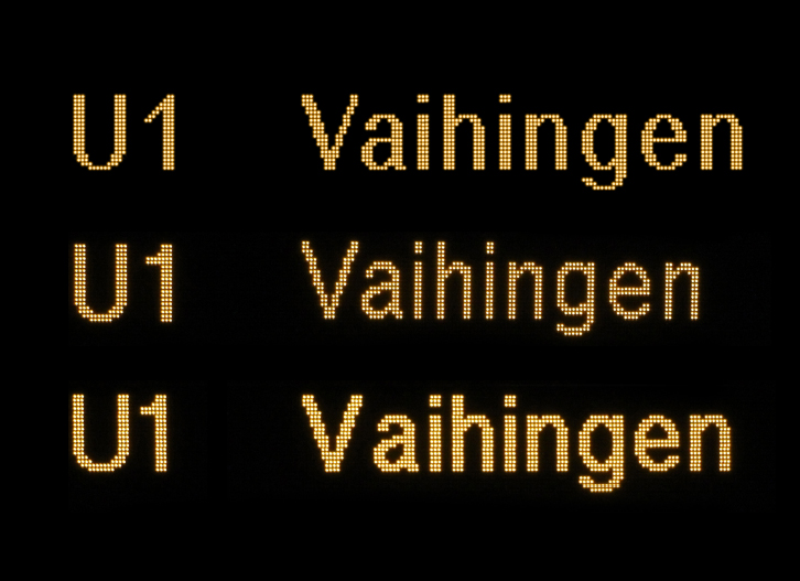 Generell kann man feststellen, dass fast alle Verkehrsbetriebe der irrigen Annahme unterliegen, dass die Fernwirkung der Buchstaben umso größer wäre, je fetter sie sind. Der Zwischenraum und das Umfeld wird dem völlig geopfert.
