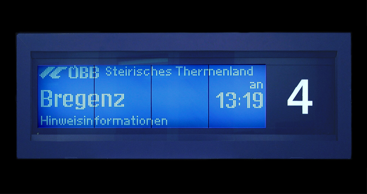 Entwurf der entsprechenden Schriften in zwei Größen einschließlich der nötigen Symbole und Piktogramme für die elektronischen Zuganzeigen für die Bahnhöfe der Österreichischen Bundebahnen