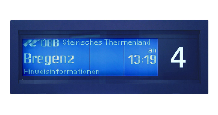 Zug- und Bahnreisende werden auf den österreichischen Bahnhöfen, Bahnsteigen, Bahnhofsvorplätzen und in den Zügen von einem neuen einheitlichen System visueller Informationen informiert und geleitet.