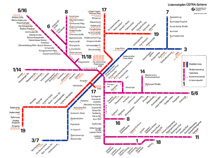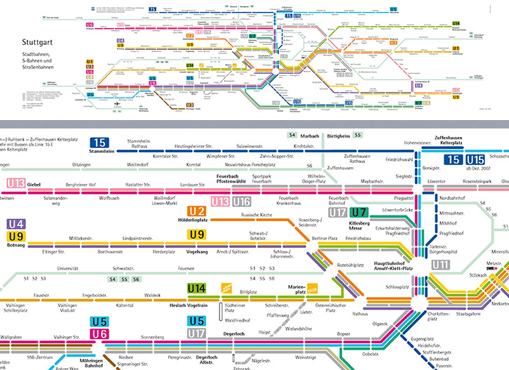 LH hat Liniennetzpläne für U-Bahnen und Straßenbahnen in Hannover 1975, Stuttgart 1980 bis 2013, Darmstadt 1982, Bonn-Köln 1994, Berlin 1997 entworfen.