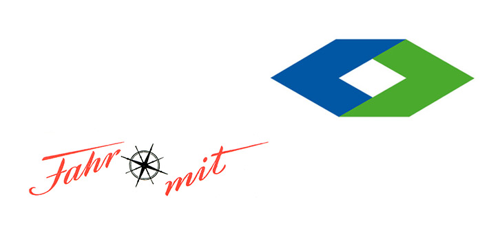 Die Tochterfirma der städtischen Verkehrsbetriebe nannte sich ursprünglich „Fahr mit- Reisen“. LD überzeugte das Mutterunternehmen den Namen in ÜSTRA-Reisen zu verändern um die Marken-Auftritt zu stärken und begleitend dazu dieses Logo zu verwenden.