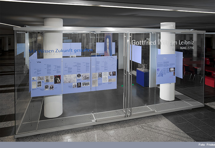 In zwei gläsernen Pavillons im Erdgeschoß des Hauptgebäudes der Leibniz Universität Hannover wird über die epochalen Entdeckungen und Beiträge von G. W. Leibniz in einer abgewandelten Form der Wanderausstellung dauerhaft informiert. Verantwortlich für Inhalt und Organisation: