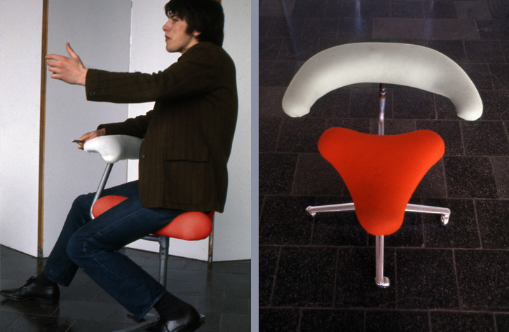Studie für einen mechanikarmen Lowcost-Arbeitsstuhl für den Privatbereich bzw. Heimarbeit. Physische Entlastung durch vielseitige Bewegungsmöglichkeiten.