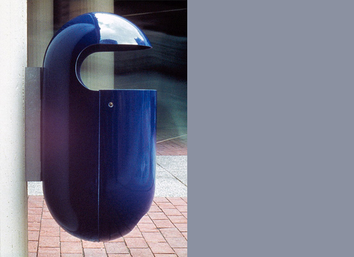 Der Behälter in GFK mit einem Metalleinsatz entstand anlässlich der Entwurfsarbeiten für die innerstädtische Fußgängerzone „Passerelle“ in Hannover.