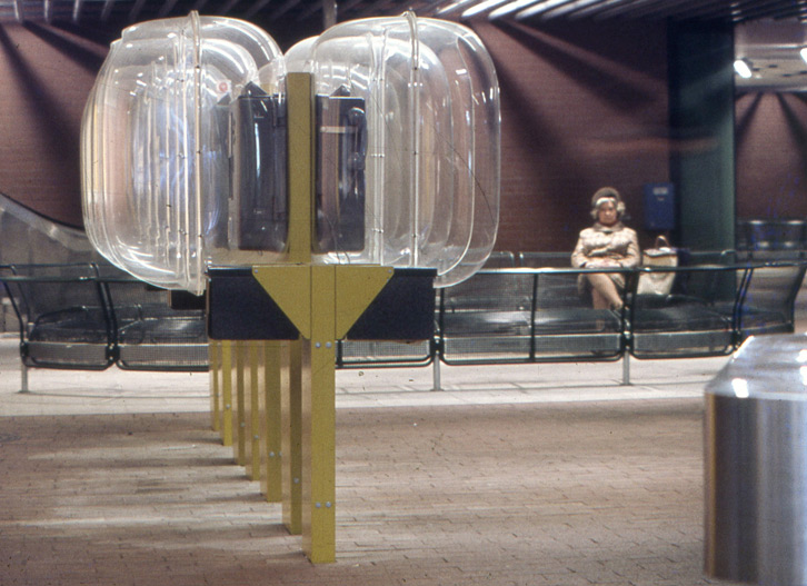 Anstelle des bis dahin üblichen Rundrohrs haben die Designer hier erstmals eine flächige Stele als Trägerelement eingesetzt, was anschließend vielfach kopiert wurde. Die Form der Plexiglas-Haube erlaubte relativ kompakte Kombinationen. Entstanden im Zusammenhang mit der Gestaltung der innerstädtischen Fußgängerzone „Passerelle“ in Hannover, später auch auf Airports.